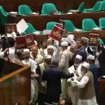 As nearly 80 MPs from the opposition alliance continued shouting in protest, the atmosphere in the chamber grew tense. When the chief whip requested the president to begin his address, Shahabuddin calmly started his address amid the noise, maintaining a composed demeanour that suggested he had expected nothing less.